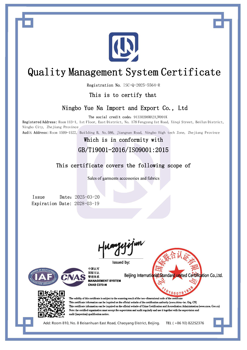 La fábrica certificada ISO de la compañía de la importación y de la exportación de NINGBO Yue Na ofrece las soluciones superiores de OEM/ODM para las marcas globales. # explore las fábricas